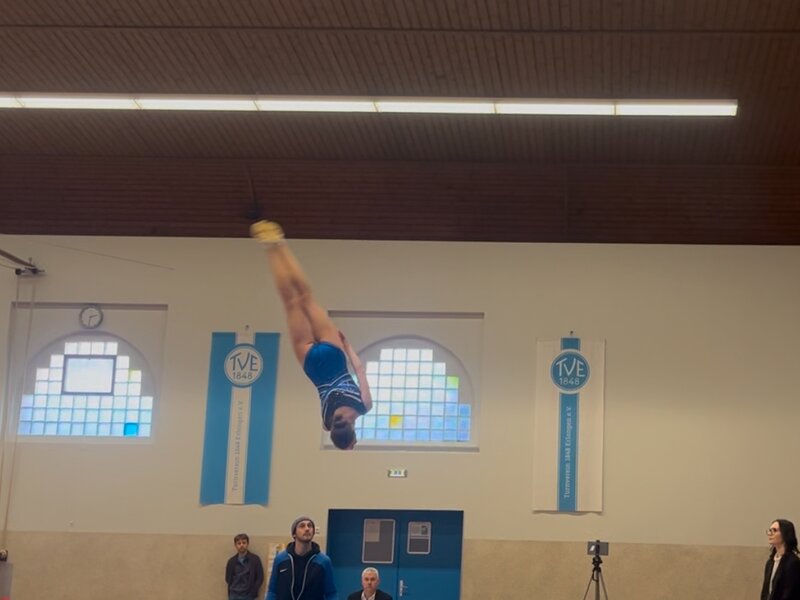 Und der Wettkampf in Erlangen bot den Zuschauern atemberaubende Sprünge und beeindruckende Doppelsaltis in verschiedenen Varianten. Bei den Männern zeigte Philipp Kleidernigg von den Munich Airriders die Tageshöchstschwierigkeit von 6,4 Pkt. und war auch der Einzige im gesamten Teilnehmerfeld der mit einem Endergebnis von 62,2 Pkt. die 60er-Marke knackte.