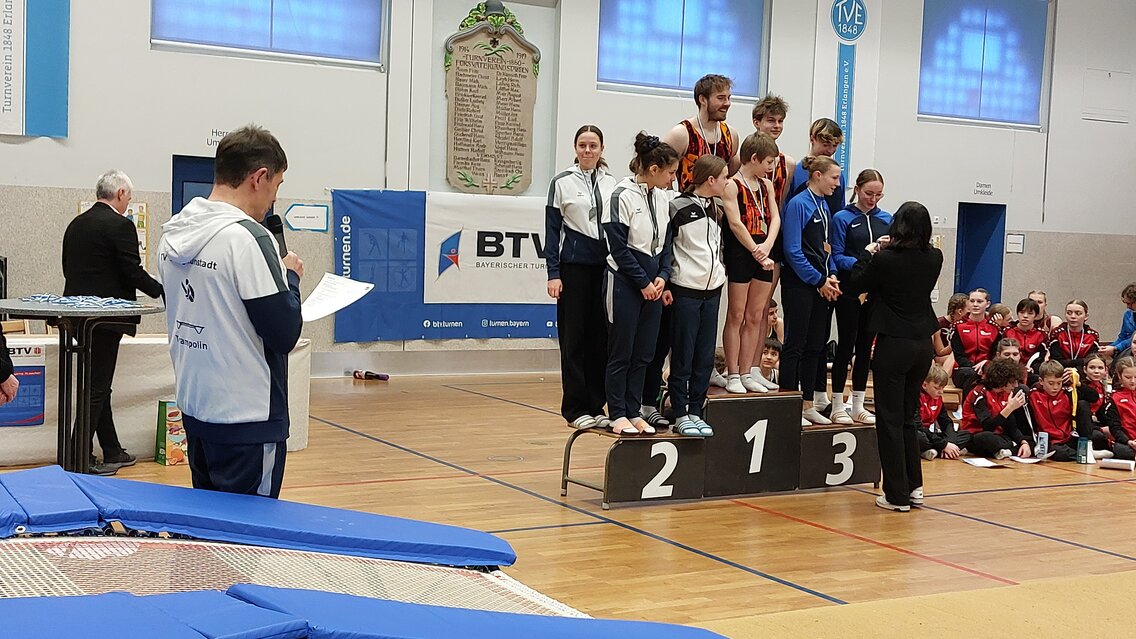 Bei den Jugendturnerinnen bis 11 Jahren sicherte sich Josephine Gräfe von der Bayreuther Turnerschaft den ersten Platz mit einer Gesamtpunktzahl von 57,4 in dem größten Teilnehmerfeld von 13 Springerinnen. Auch in den höheren Altersklassen wurden hervorragende Leistungen gezeigt. In der Kategorie der Jugendturner 12-14 Jahre triumphierte Aron Thiel von den Munich Airriders mit einer beeindruckenden Punktzahl von 58,1. Den Titel in dieser Klasse bei den Jugendturnerinnen gewann Melina Keller von der Bayreuther Turnerschaft mit 56,6 Pkt.