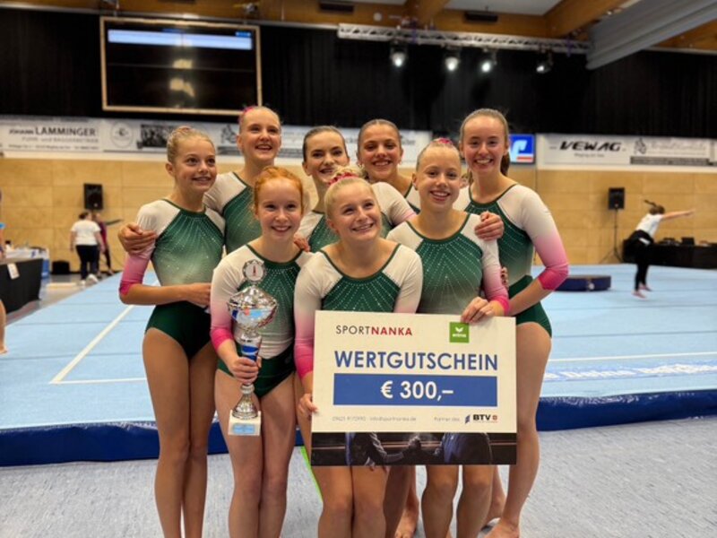 Als Anerkennung für ihre Leistung, Disziplin und ihr Engagement stellte unser Partner ERIMA Gutscheine für das erstplatzierte Team zur Verfügung. Der Gutschein kann für Sportartikel zur Unterstützung der Vereinsarbeit oder kommender Projekte eingelöst werden und wurde feierlich bei der Siegerehrung an die Turnerinnen überreicht.