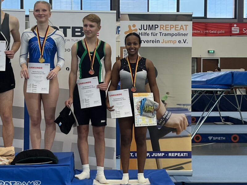 Parallel zu Aurelia turnte Naomi Tafere von den Munich-Airriders am anderen Kampfgericht - hier in der Frauenklasse 17+. Sie steigerte sich im Wettkampf und verließ schließlich mit einer Bronzemedaille das Siegerpodest.
