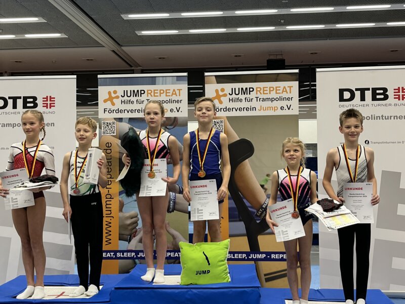 Wie bereits Anfang des Jahres die Doppelminitrampolinspringer wurden nun die Trampolinspringer anlässlich des 50-jährigen Bestehens der Trampolinabteilung des TV Weingarten zum Deutschland Cup eingeladen.