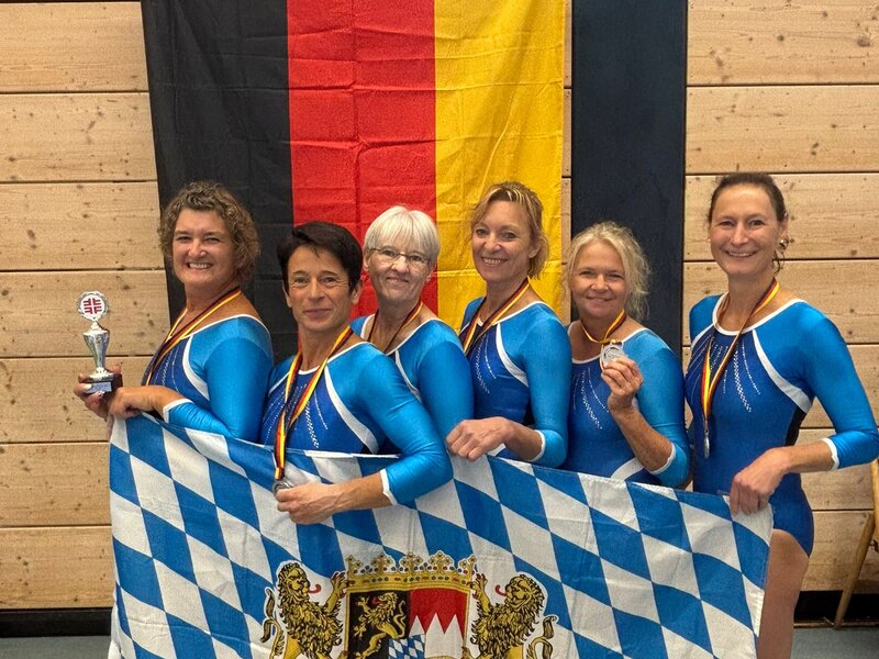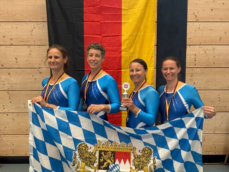 Die Frauenmannschaft in der Klasse W40+ konnte im Vergleich zum Vorjahr einen Platz gutmachen und gewann Silber unter zehn Teams – knapp hinter der Mannschaft des Badischen Turnerbunds. In der Besetzung Veronika Flöter (TSV Unterpfaffenhofen-Germering), Anja Barwigck (TV Planegg-Krailling), Julia Wüllner (TV 1912 Sailauf) und Andrea Kampfer (Munich Oldstars) zeigten alle eine geschlossene Teamleistung, die verdient zum Vizemeistertitel führte.