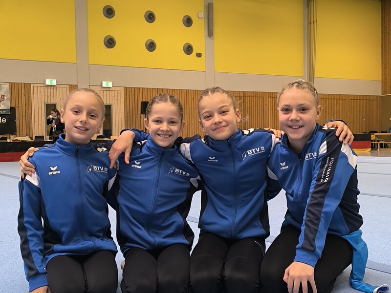 Das bayerische Team in der AK 11 setzte sich aus Emma Lou Pohl und Julia Kammer vom TSV Unterhaching sowie Lina Falk und Anni Schubart vom TV Coburg-Ketschendorf zusammen. Die Mädels zeigten einen tollen Zusammenhalt und feuerten sich gegenseitig kräftig an. Mit einer guten Mannschaftsleistung erturnten sie sich hinter den Teams aus Baden und Hessen einen starken 3. Platz, über den sie sich sehr freuten.