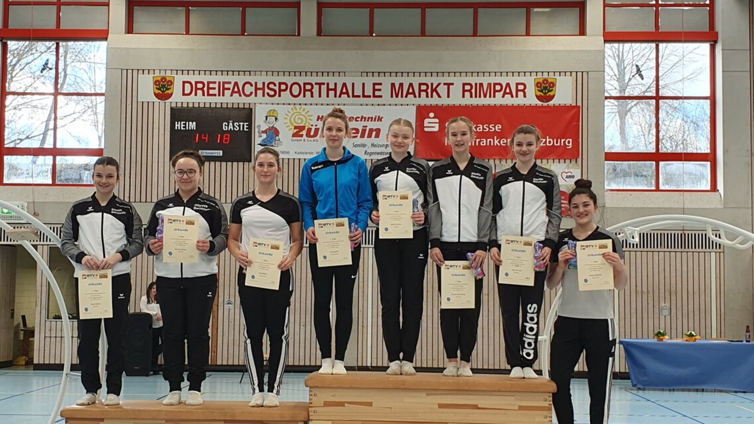 Der Wettkampf verlief sehr harmonisch und es wurden tolle Leistungen dargeboten. Natürlich gelang die eine oder andere Übung noch nicht wie geplant, aber es kann ja noch ein paar Wochen konzentriert trainiert werden, bevor es am 29.April bei den Bayerischen Meisterschaften, die im Rahmen des Bayerischen Landesturnfestes in Regensburg ausgetragen werden, auf Titeljagd geht, bzw. um die Qualifikation zu den Süddeutschen Meisterschaften gerungen wird.