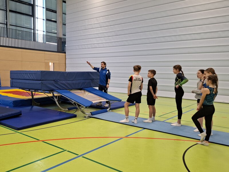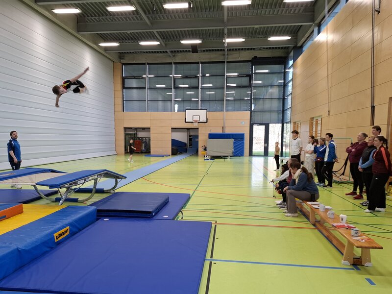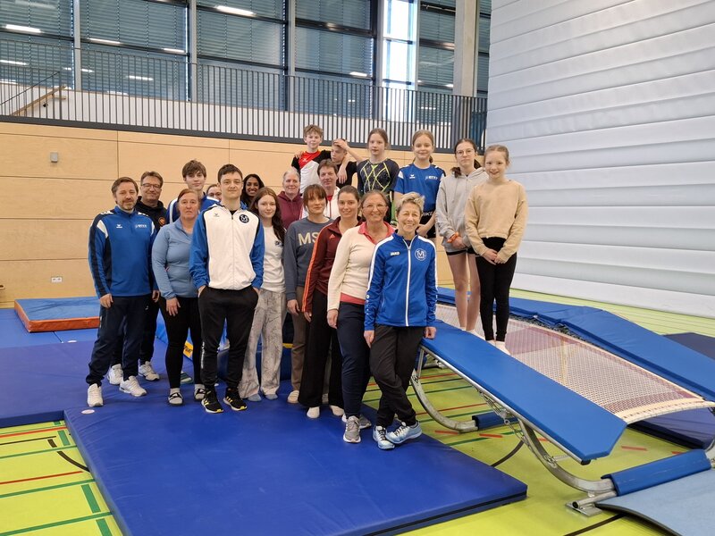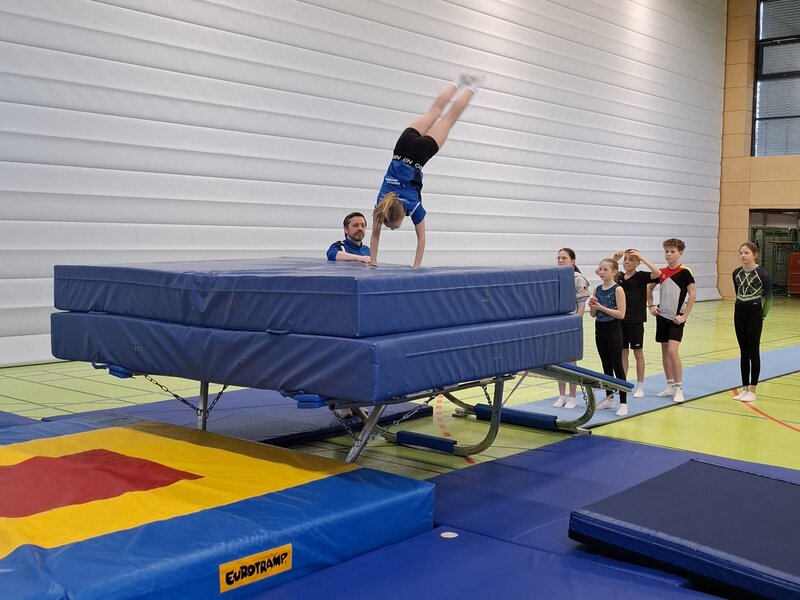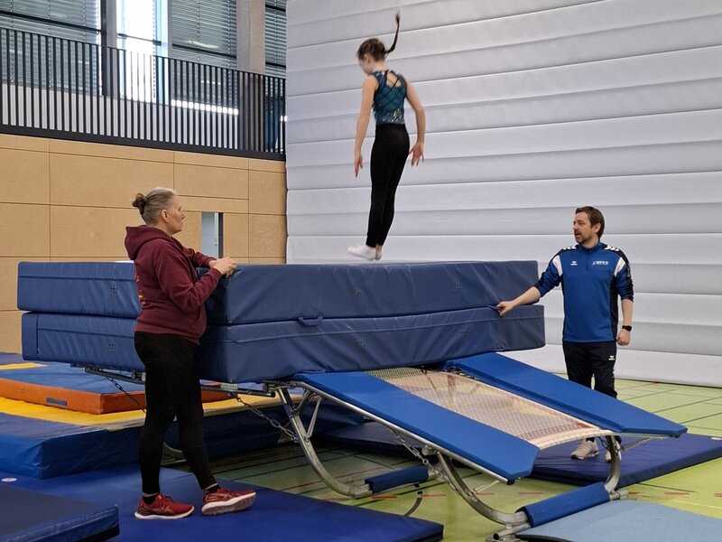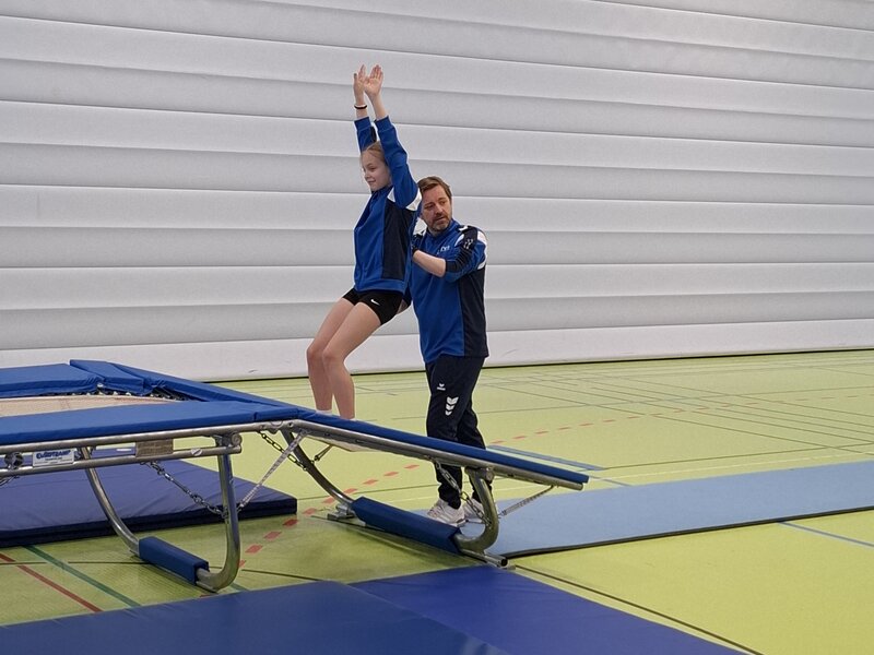 Die Fortbildung bot einen umfassenden Einblick in die Inhalte des Doppelminitrampolinturnens. Konkrete Inhalte waren die Trainingsgestaltung, der methodische Übungsaufbau, zentrale Aspekte wie Anlauf, Aufgangs-, Spotter- und Abgangssprünge, passenden Hilfestellungen und Anforderungen des DMT‑Moduls im Leistungsvoraussetzungstest.