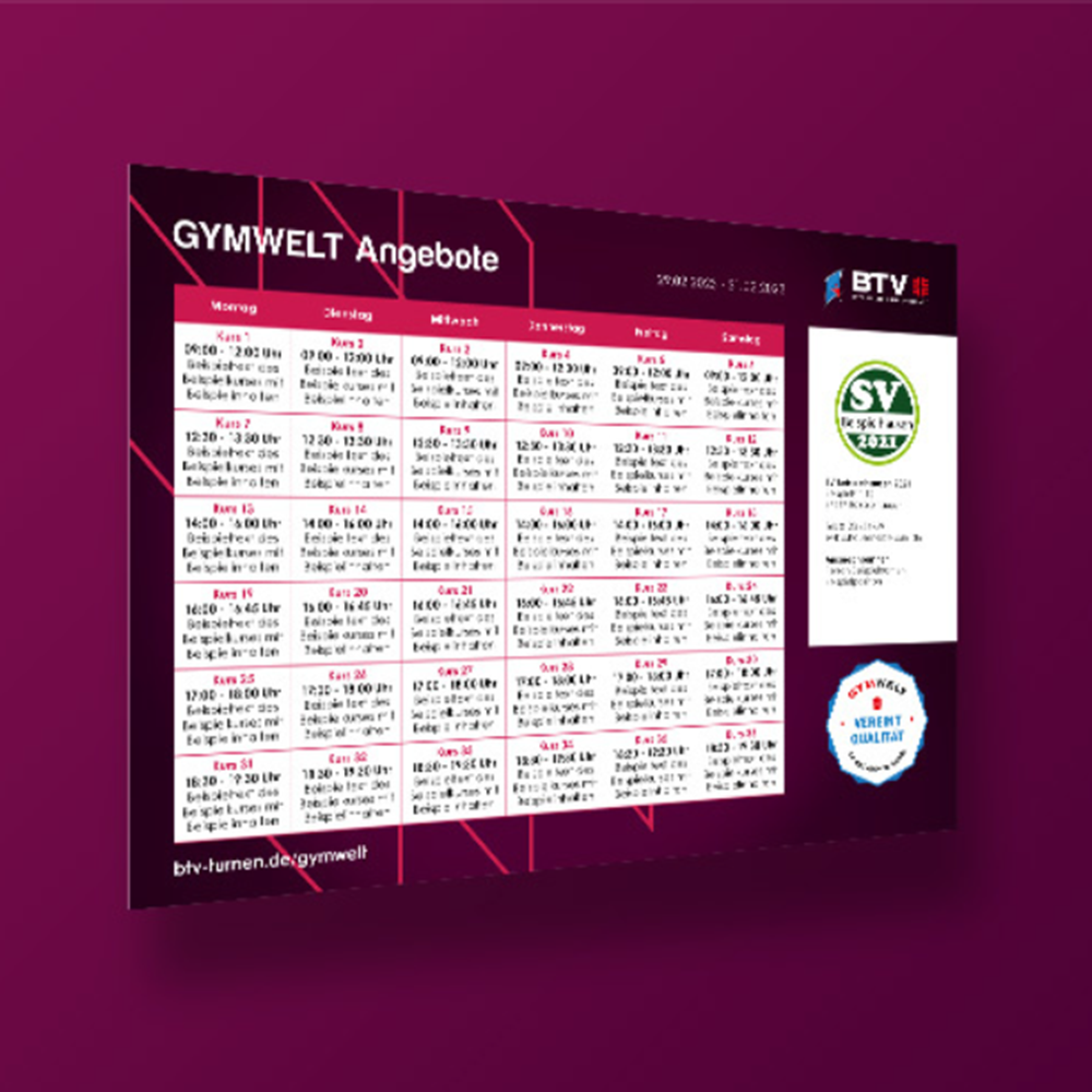 - Mindestens 2 Angebote aus zwei GYMWELT-Fachbereichen